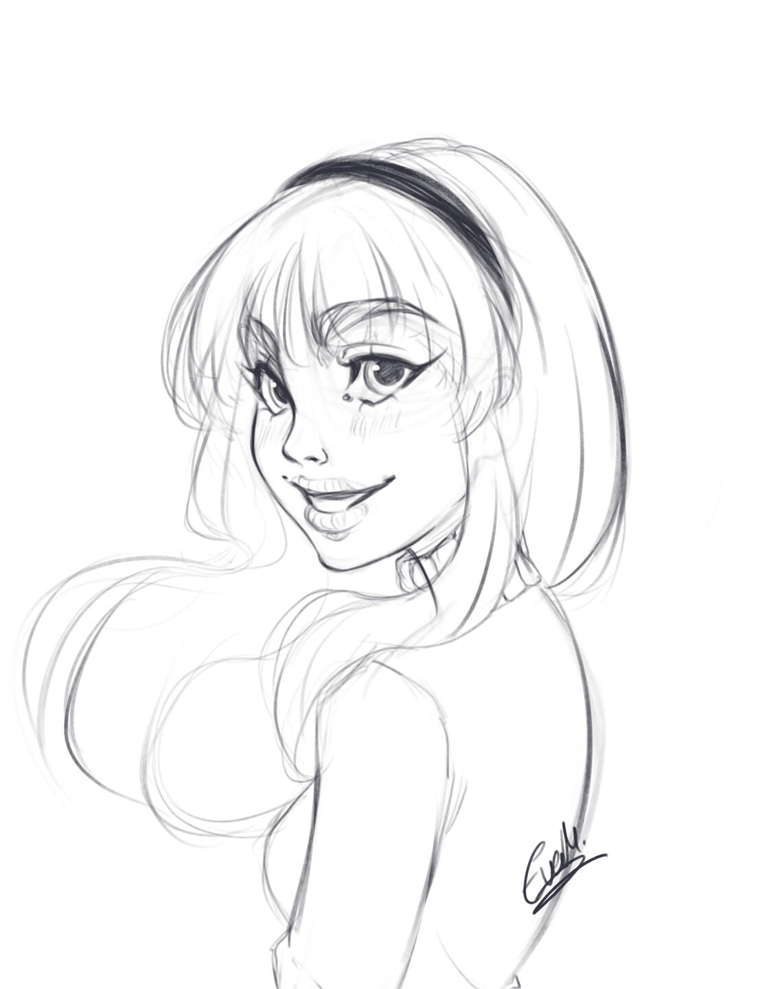 A sketch or full color of a character.